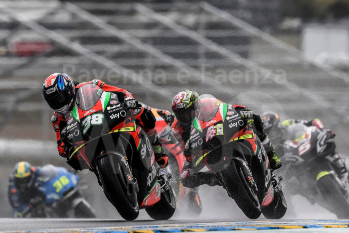 L’ultima sorpresa del weekend il circuito francese di Le Mans l’ha riservata pochi minuti prima della partenza, con uno scroscio di pioggia che ha costretto team e piloti a stravolgere i piani. Gara bagnata quindi, con Bradley scattato benissimo al via e Aleix bravo ad evitare la caduta di Valentino Rossi e ad agganciare la top-10.