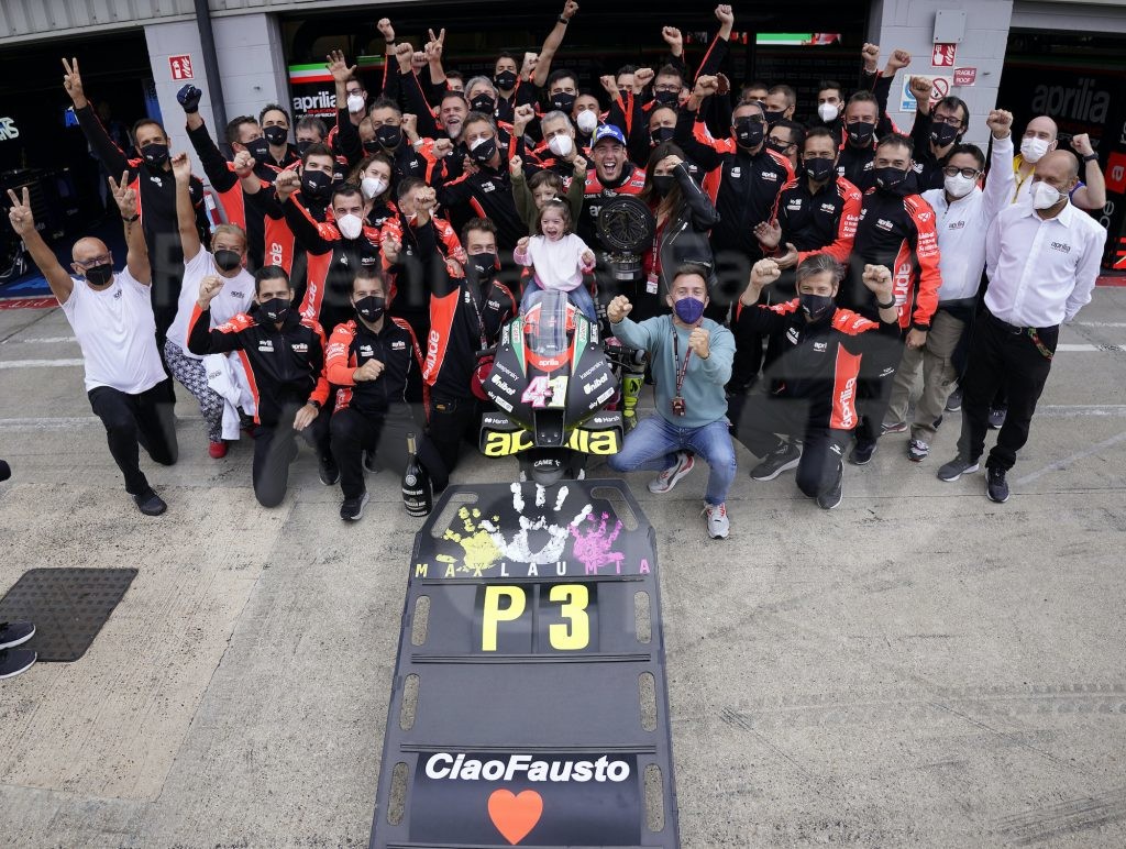 “Ci siamo andati vicino, l’abbiamo sfiorato più volte e alla fine è arrivato! Un podio meritato, sudato, che dedico prima di tutto ad Aprilia” ha dichiarato il pilota spagnolo.