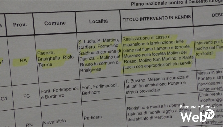 Nel 2010 la Regione Emilia-Romagna, guidata da Vasco Errani, firmò un accordo col governo Berlusconi per realizzare diverse opere per la messa in sicurezza del territorio. Previsto un investimento da quasi 150 milioni di euro, nel quale rientravano le ancora non terminate casse d’espansione del fiume Senio, nuove casse d’espansione sul Lamone e altri interventi per diminuire il rischio di piene e alluvioni. I fondi però non furono mai stanziati dai governi successivi sotto la guida di Monti, Letta e Renzi. Nell’agosto del 2018, invece, la Corte dei Conti autorizzò la spesa di 74 milioni di euro per aumentare la sicurezza del territorio, con interventi nella Romagna Faentina e in Bassa Romagna. 8 milioni solo per le casse d’espansione di Tebano e Cuffiano. Anche in questo caso i lavori non sono mai partiti. Fratelli d’Italia, con una mozione, ora chiede spiegazioni sul mancato avvio delle opere che avrebbero potuto ridurre i danni dell’alluvione dello scorso maggio.