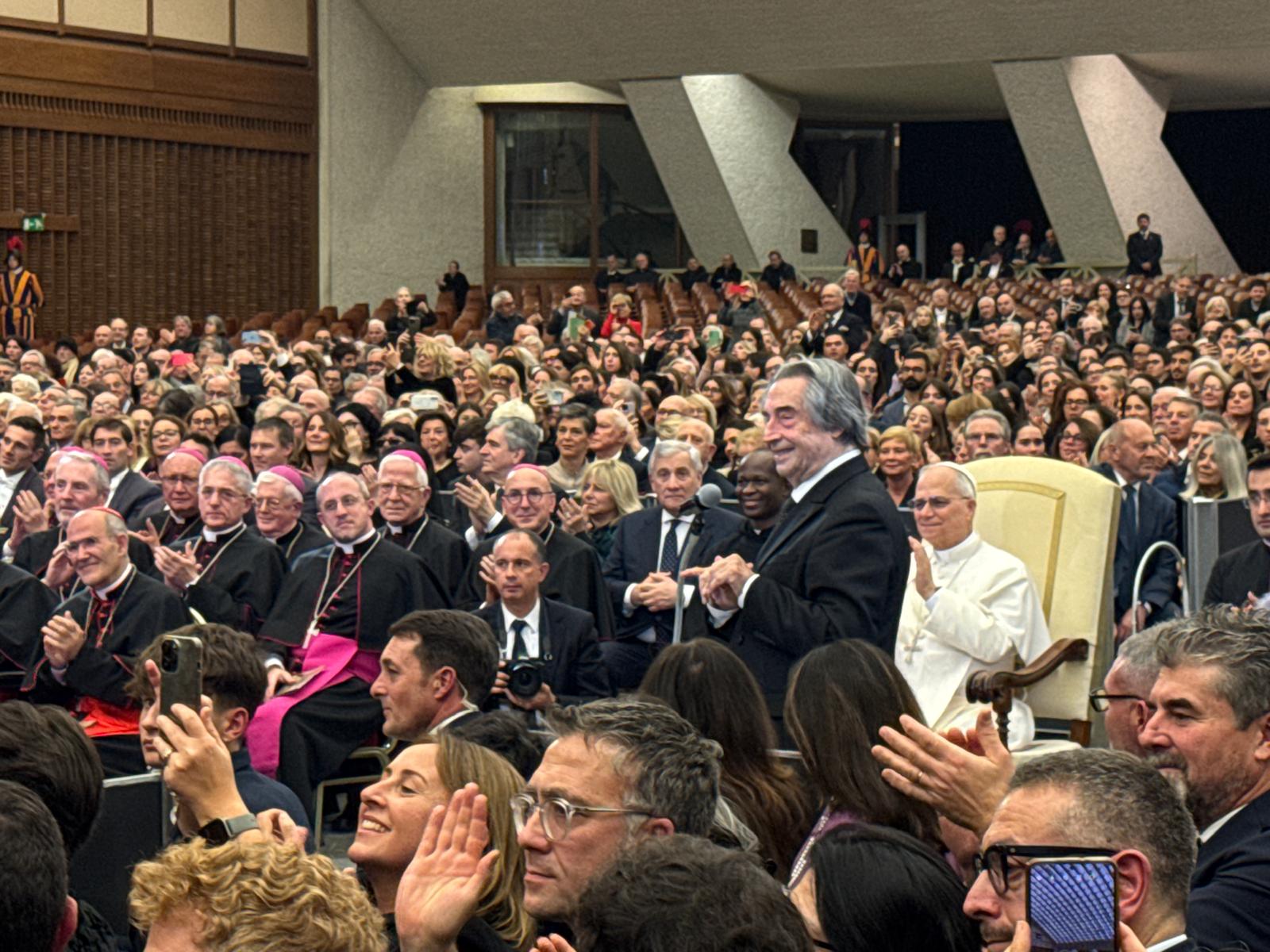 Il grande repertorio sacro è tornato protagonista alla Sala Nervi in Vaticano, dove il Maestro Riccardo Muti ha diretto l’Orchestra Giovanile “Luigi Cherubini” nel tradizionale concerto in onore di Papa Leone XIV. Un evento di altissimo valore musicale e spirituale, impreziosito dal conferimento a Muti del Premio Ratzinger 2025, riconoscimento assegnato ogni anno a figure di spicco nel campo della cultura, dell’arte e del pensiero teologico. Nel ricevere il premio, il Maestro ha rivolto parole intense al Pontefice: «Dal primo momento, da quando lei ha cominciato ad esternare i suoi propositi, io l’ho amata. Sono stato inoltre per anni direttore dell’Orchestra di Chicago, la sua città natale». Muti ha poi ricordato il suo profondo rapporto con Benedetto XVI: «Il mio rapporto con lui è stato quello di un cattolico fervente con un grande teologo. L’ultimo incontro fu quando padre Georg Gänswein mi chiamò dicendomi che il Papa voleva salutarmi. Io cerco di fare nella musica ciò che Dante chiama “rapimento e non comprensione”. Mozart, per me, è una delle espressioni dell’esistenza di Dio. Alla fine di quel nostro incontro, Benedetto XVI mi disse con i suoi occhi celesti: Lasciamolo riposare in pace questo povero Mozart.» Alla cerimonia erano presenti numerosi rappresentanti istituzionali di Ravenna: Antonio Patuelli, presidente di ABI e de La Cassa di Ravenna S.p.A.; Mirella Falconi, presidente della Fondazione Cassa di Risparmio di Ravenna; la presidente della Provincia Valentina Palli e il sindaco di Ravenna Alessandro Barattoni, parte di una nutrita delegazione cittadina. Il concerto e il riconoscimento testimoniano ancora una volta il prestigio internazionale del Maestro Muti.