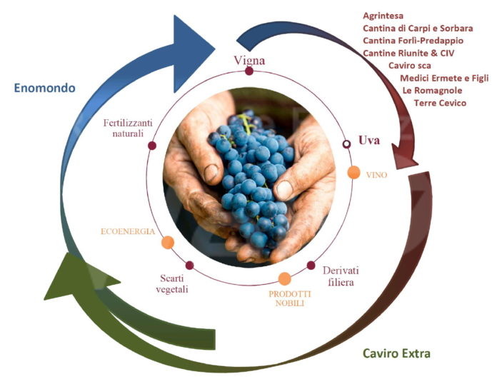 “Questo progetto strutturato di filiera internazionale sostenibile – affermano gli assessori regionali Vincenzo Colla (Sviluppo economico) e Alessio Mammi (Agricoltura) -, testimonia una maturità d’impresa non scontata per un comparto che dà lavoro a migliaia di persone e vanta prodotti enologici di grande qualità con numeri ed export davvero significativi, oltre a una rete commerciale tra le più evolute nel Paese per l’agroalimentare. Il progetto, che la Regione sostiene e promuove, ha caratteristiche davvero innovative per il contesto nazionale: cooperative e aziende, che di norma competono, hanno avuto l’intelligenza e la lungimiranza imprenditoriale di mettersi insieme e strutturarsi per essere ancora più forti, mantenendo un fortissimo legame con il territorio, gli agricoltori e i produttori, salvaguardando la qualità dei loro prodotti e creando al contempo le condizioni per stare su un mercato sempre più globalizzato. Un progetto davvero capace di raccontare e attuare il modo di fare impresa e creare lavoro del nostro territorio, coerente con una direttrice strategica del Patto per il Lavoro e per il Clima, poiché investe sull’economia circolare in un’idea di riciclo, recupero e riuso della materia prima utilizzata, che è il grappolo d’uva”.
