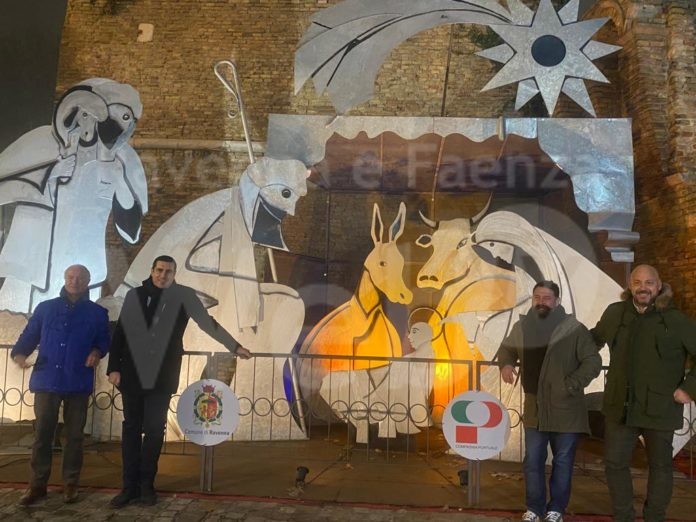 Il presepe artistico in metallo realizzato per il quinto anno consecutivo dalla Compagnia portuale e dal Circolo portuali in compartecipazione e collaborazione con il Comune di Ravenna è stato inaugurato oggi pomeriggio in piazzetta Gandhi, nella cornice di porta Adriana, adiacente via Cavour. Erano presenti il sindaco Michele de Pascale, il presidente del Circolo portuali Luigi Spadaro, il direttore della Cooperativa portuale Denis Di Martino e per la Compagnia portuale Gianmarco Buzzi e Luca Grilli.