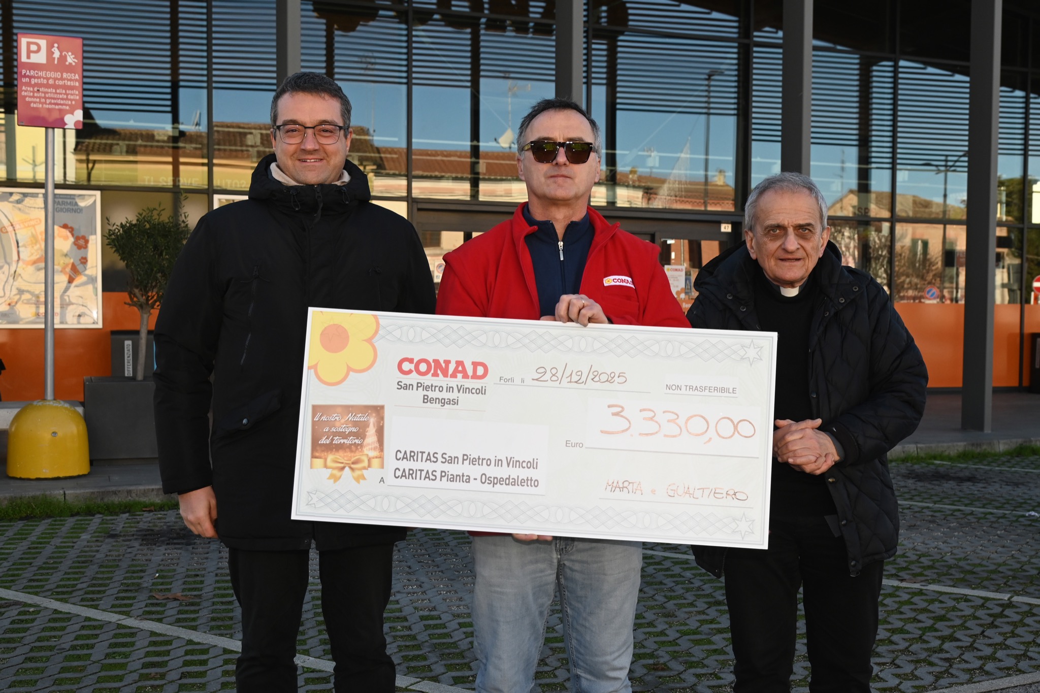 «Essere parte di una comunità significa saperne ascoltare i bisogni, specialmente in un periodo dell’anno carico di significato come quello natalizio — ha dichiarato il socio Conad Gualtiero Mariotti —. Anche quest’anno abbiamo voluto che le festività fossero l’occasione per un’iniziativa di valore sociale, capace di trasformare la spesa quotidiana in un gesto concreto di solidarietà. Per noi essere “Persone oltre le cose” significa anche sostenere le realtà del territorio che sono al fianco di chi attraversa un momento di difficoltà. Con questa donazione vogliamo ribadire la nostra vicinanza alle comunità di cui facciamo parte. Questa erogazione servirà per poter dare concreto supporto a quelle famiglie e singole persone verso le quali Caritas è tradizionalmente impegnata, che si tratti di un aiuto per le utenze o di un sostegno per altre esigenze essenziali legate alla vita quotidiana».