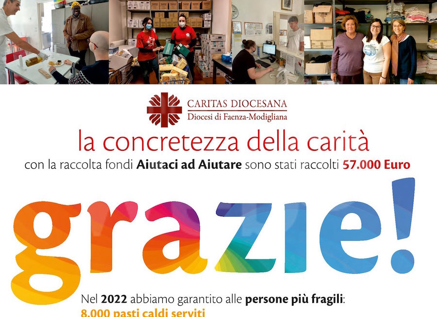 Una grande testimonianza di solidarietà che ha coinvolto tutta la cittadinanza nel mettersi a fianco delle persone più fragili. Anche grazie alle iniziative della campagna “Aiutaci ad aiutare”, nel 2022 sono stati donati alla Caritas diocesana di Faenza-Modigliana circa 57mila euro. Risorse con le quali è stato possibile garantire e potenziare i servizi essenziali offerti dagli operatori e volontari del Centro di Ascolto e prima accoglienza Caritas, alle persone più bisognose del nostro territorio. E a queste donazioni, si aggiungono altri 97mila euro dedicati specificatamente all’accoglienza dei profughi ucraini.