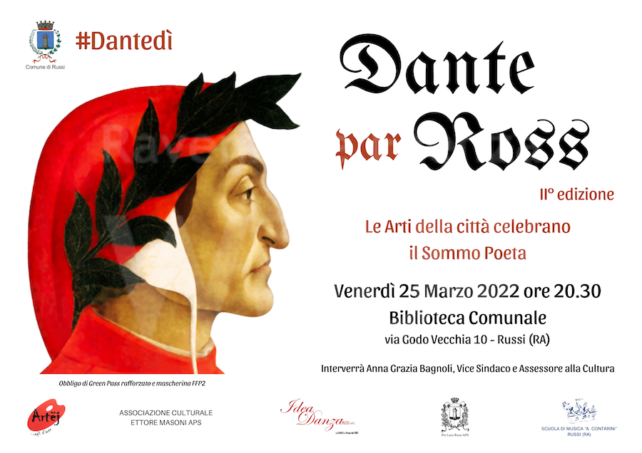 Dopo il successo della prima edizione, svoltasi come noto il 9 settembre scorso nel Giardino della Rocca “Terzo Melandri”, venerdì 25 marzo 2022, alle ore 20.30, avrà luogo la seconda edizione di “Dante par Ross”, in occasione del “Dantedì”, giornata nazionale dedicata al Sommo Poeta e padre della lingua italiana.