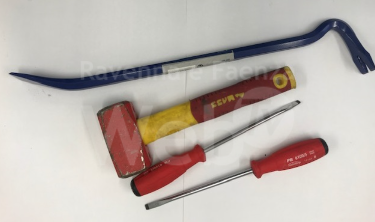 All’interno del baule gli agenti hanno rinvenuto e sequestrato un palanchino e un crick -non facente parte della dotazione del veicolo- che si trovavano occultati da un materasso, mentre all’interno dell’abitacolo dell’auto, sotto ai tappetini, due grossi cacciaviti della lunghezza di cm.30 e una mazzetta da muratore.