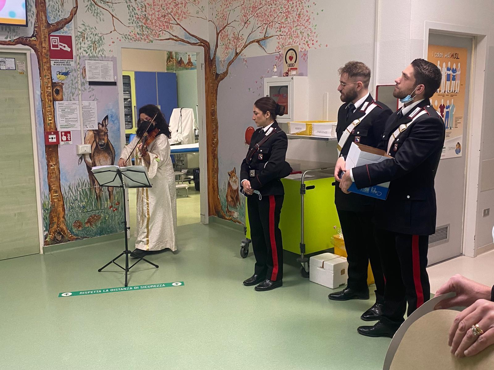 Proseguono le iniziative all’interno della Pediatria dell’ospedale di Faenza tese a promuovere l’umanizzazione delle cure. Nei giorni scorsi, i bambini presenti sono stati allietati delle note musicali e letture di fiabe sonore, progetto ideato, già da qualche anno, dalla violinista Laura Lo Buono e, successivamente da un incontro con ospiti molto graditi. Nella circostanza, a dialogare con loro sono stati alcuni dei Carabinieri della locale Compagnia che si sono intrattenuti con i piccoli ospiti ai quali hanno raccontato le loro esperienze professionali, l’importanza del servizio svolto per garantire la sicurezza e la tranquillità dei cittadini, ma soprattutto storie di uomini e donne a cui è capitato di donare piccoli gesti per fare riaccendere sui loro volti un sorriso di felicità e speranza. I carabinieri, infatti, proprio per la capillarità sul territorio, sono sempre presenti nella vita quotidiana delle persone ed oltre a essere un presidio in caso di bisogno, spesso diventano un punto di riferimento nella vita e nelle esperienze quotidiane di molte persone. Proprio per questo, nella circostanza, i militari si sono soffermati nel trattare i valori dell’amicizia e della fiducia con i giovani degenti dell’ospedale ai quali hanno fatto dono di cappellini e astucci dell’Arma dei Carabinieri.