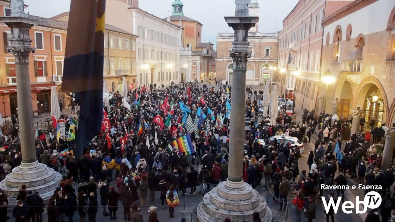 Nuova manifestazione in Piazza del Popolo a Ravenna contro la guerra in Ucraina. L’appuntamento è stato organizzato da Cgil, Cisl e Uil e ha visto la partecipazione di diverse associazioni e dei rappresentanti delle amministrazioni locali della provincia di Ravenna, della stessa Provincia di Ravenna e della Regione Emilia-Romagna. In piazza ovviamente anche molti ucraini residenti a Ravenna che in questi giorni hanno già più volte comunicato la loro preoccupazione per le famiglie rimaste nel Paese natio oggi sotto attacco da parte della Russia.