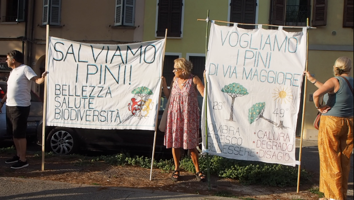 Nuova manifestazione contro l’abbattimento dei pini a Ravenna. Dopo la mobilitazione di Lido di Savio, lunedì 26 agosto un gruppo di cittadini è tornato a manifestare in via Maggiore, dove già erano stati organizzati dei presidi contro l’abbattimento di alberi. Per l’amministrazione comunale le piante sono ormai diventate pericolose, instabili, causano danni a strade e marciapiedi. Il Comune ha promesso una ripiantumazione, ma lo sforzo è considerato inutile da coloro che invece difendono le alte alberature di via Maggiore. Per loro i pini sono una risorsa ambientale e culturale: oltre ad essere lo stemma di Ravenna, garantiscono ombra contro le giornate sempre più calde, abbelliscono il paesaggio di una strada altrimenti caratterizzata da solo case e cemento, aumentano il benessere dei residenti e ovviamente garantiscono la biodiversità. A fianco degli ambientalisti si è schierata anche l’associazione Dis-Ordine. Il presidente, Marcello Landi, ha chiesto alla giunta di spiegare le ragioni degli abbattimenti e di confrontarsi con la popolazione.