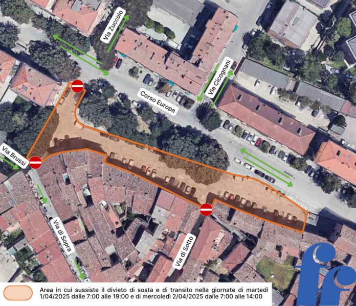 Martedì 1° aprile (nella fascia oraria 7-19) e mercoledì 2 aprile (dalle 7 alle 14), lungo la contro-strada di corso Europa (area evidenziata in arancione nella planimetria allegata), per la realizzazione della nuova segnaletica stradale, sarà vietata la sosta e l’accesso. Sarà inoltre in vigore il divieto di transito per i veicoli, ad eccezione dei mezzi di soccorso e di emergenza. Compatibilmente con l’avanzamento dei lavori, i residenti e i mezzi di soccorso potranno accedere per raggiungere la propria destinazione.