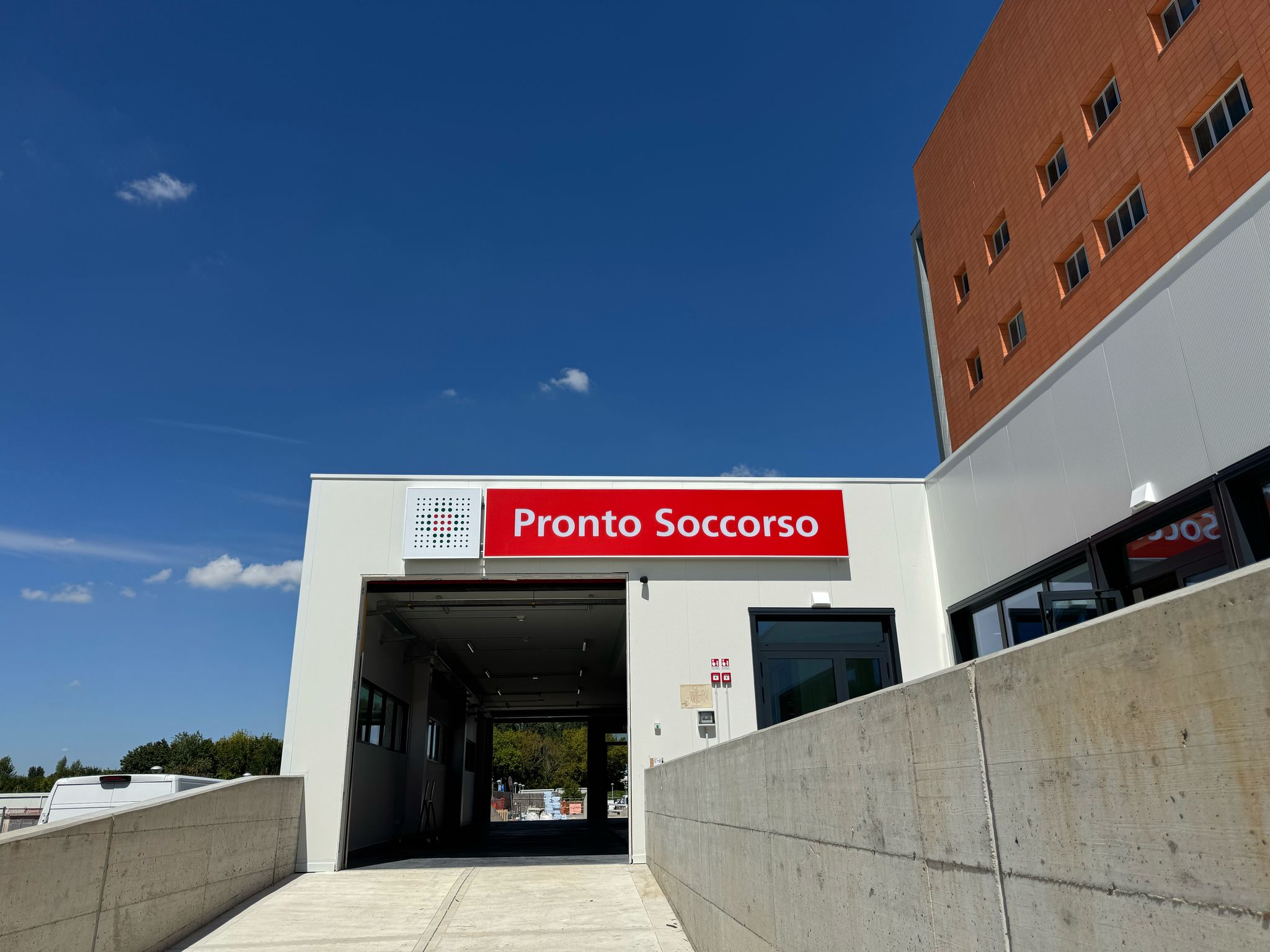 L’accesso carrabile, dedicato ai mezzi di soccorso, e quello pedonale adiacente, saranno raggiungibili da Viale Randi secondo la segnaletica disponibile in concomitanza della nuova apertura. Risulteranno quindi riposizionati nella loro originaria allocazione ed in prossimità dell’area di parcheggio dell’Ospedale.