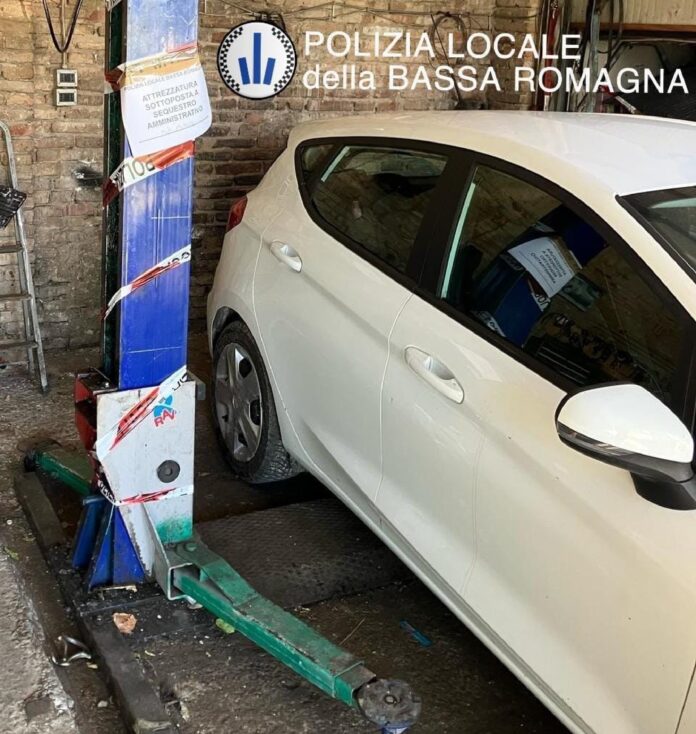 Gli agenti della Polizia locale del presidio di Massa Lombarda hanno individuato e posto sotto sequestro un’officina meccanica che svolgeva attività da gommista del tutto abusiva. L’officina, che si presentava come un’abitazione privata, era sprovvista di qualsiasi autorizzazione e operava in totale violazione delle norme di sicurezza più elementari. Al momento del controllo degli agenti, c’erano cinque auto in riparazione, con una dotazione di ponti sollevatori e attrezzature professionali di importante valore economico. È stato tutto posto sotto sequestro e il responsabile, che ha dichiarato che l’attività era in essere da anni, è stato multato con una sanzione amministrativa di 5.132 euro.