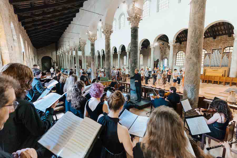 È da sempre la scuola di musica della città e del territorio: dopo un lungo percorso da Istituto pareggiato, il “Verdi”, punto di riferimento per generazioni e generazioni di giovani che si sono aperti alla musica e spesso l’hanno trasformata in professione e vita, è diventato Conservatorio di Stato. Un passaggio importante, che ne certifica l’importante funzione e l’indiscutibile qualità e consente all’istituto stesso di arricchirsi di più articolati percorsi e opportunità formative. Un riconoscimento che non poteva non essere festeggiato con un concerto, quello che Ravenna Festival ospita venerdì 14 luglio, alle 21.30, in uno degli scenari più prestigiosi della città, la Basilica di Sant’Apollinare in Classe, affidandolo, inevitabilmente, ai complessi vocale e strumentale attivi all’interno della stessa istituzione, ovvero Coro & Ensemble 1685 del Conservatorio Giuseppe Verdi di Ravenna diretti da Antonio Greco. Con un programma tutto primo settecentesco dei più interessanti e ambiziosi: lo Stabat Mater di Antonio Caldara e la Messa in sol minore BWV 235 di Johann Sebastian Bach.