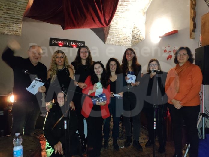 Al termine delle performance delle artiste premiate, l’assessore alle Pari Opportunità del Comune di Faenza Milena Barzaglia, l’assessore alla Scuola Martina Laghi e l’assessore al Turismo Federica Rosetti del Comune di Faenza, accompagnate dal Presidente del Consiglio Comunale Niccolo Bosi e