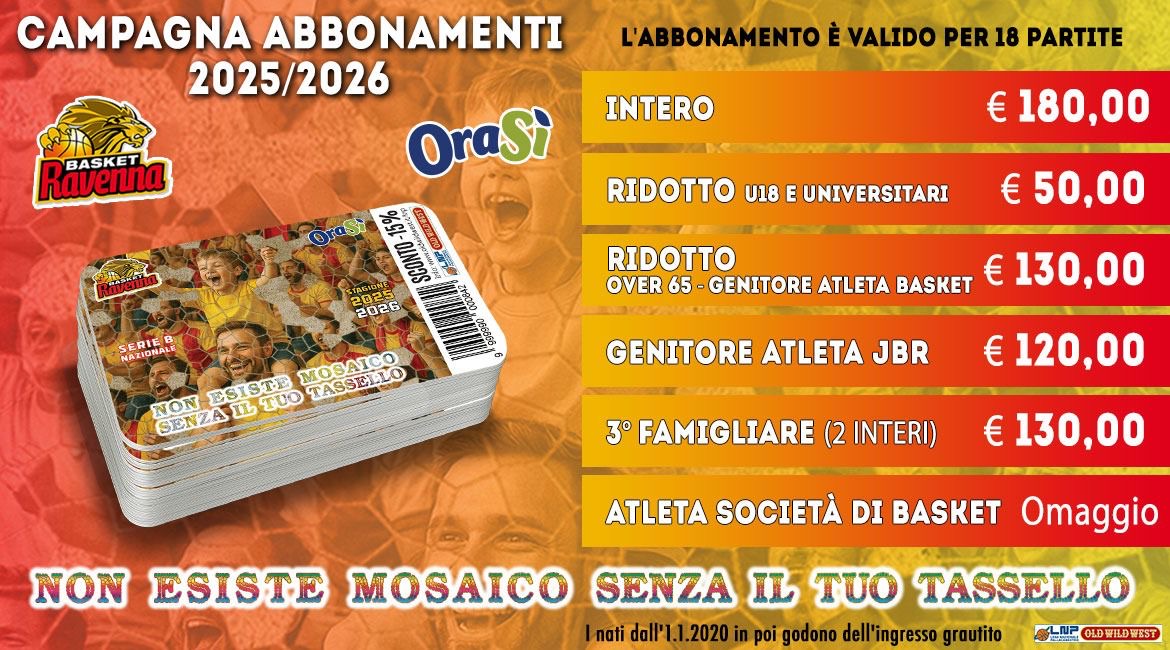 L’OraSì Basket Ravenna ricorda a tutti i tifosi che domani, sabato 6 settembre, scadrà il termine ultimo per esercitare il diritto di prelazione sulla sottoscrizione degli abbonamenti per la stagione 2025/2026.