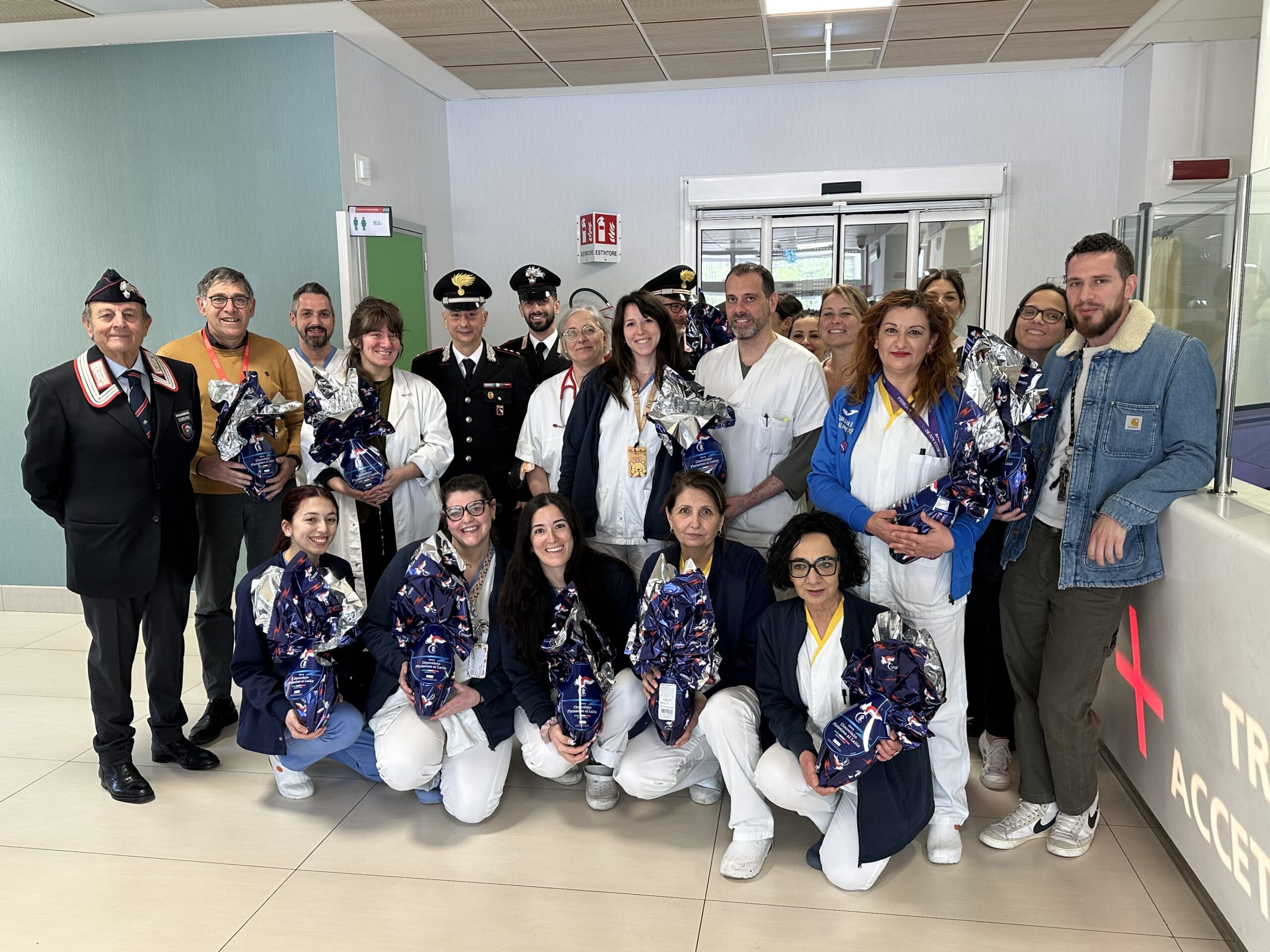 Questa mattina all’Ospedale Civile di Faenza, nei reparti di Pronto Soccorso e Medicina d’Urgenza, gli Auguri di Buona Pasqua sono arrivati dai Carabinieri di Faenza e dall’Associazione Nazionale Carabinieri che hanno consegnato tante uova di cioccolato personalizzate Arma dei Carabinieri. Un’iniziativa dell’Associazione Nazionale Carabinieri Sezione di Faenza, guidata dal Presidente, Ten. Col. Giancarlo Tatta. Agli auguri pasquali era presenti il Capitano Stefano Garbuglia, della Compagnia Carabinieri di Faenza, Il Ten. Col. Giancarlo Tatta, Presidente della Sezione ANC di Faenza, il Dott. Davide Tellarini, Direttore Sanitario del Presidio Ospedaliero, la Dott..ssa Eleonora Ferrari, Medico di Direzione, Il Dott. Gabriele Farina, Direttore Sanitario del Pronto Soccorso, Marika Zama, Coordinatrice del Pronto Soccorso, Noemi Santoro, Coordinatrice della Medicina d’Urgenza.