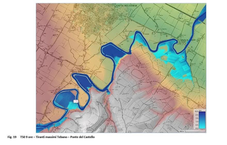 Tra Tebano e Ponte del Castello, in sinistra idraulica, il Piano prevede inoltre un nuovo sistema arginale arretrato rispetto all’esistente, fino a Ponte del Castello, a difesa dell’abitato di Castel Bolognese: una previsione di grande rilievo che rappresenta una notizia molto positiva per la sicurezza del territorio. In destra orografica analogamente il sistema golenale dovrà essere arretrato per consentire una maggiore capacità di laminazione. Il PAI evidenzia infine la necessità di predisporre un Programma generale di gestione della vegetazione ripariale, riconoscendone il ruolo chiave nella mitigazione del rischio idraulico, e individua tra gli attraversamenti critici anche il Ponte del Castello e la linea ferroviaria Bologna–Ancona.