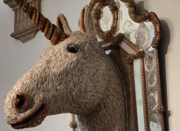 La mostra, che sta ottenendo un ottimo riscontro, è un’anteprima della IX Biennale del Mosaico contemporaneo del prossimo autunno 2025. Il percorso espositivo è strutturato nelle sei sale al primo piano dello storico palazzo di piazza Kennedy con una selezione di opere che illustrano sinteticamente il trentennale percorso dell’artista. Una prima sala dedicata ai ritratti e alle creature zoomorfe di mosaico; lavori compositi come “Unicorno” già presente nella Collezione di mosaici contemporanei del Mar – Museo d’Arte della città di Ravenna, immagine guida dell’esposizione, che pur nella costituente ricchezza di smalti e murrine riflesse nello specchio veneziano, non riesce a eludere la sua natura di trofeo, di animale estinto. Nelle sale centrali fanno capolino grandi opere, come gli organismi unicellulari con esplosioni di colore a formare un immaginario catalogo di forme archetipiche seriali. Dirette metamorfosi che investono di significato gli oggetti di uso comune. vasi e contenitori, tutti rigorosamente in vetro o cristallo ma recuperati in chiave pop, vivono accanto ad elementi in cui l’artista manipola distinte creazioni grafiche su stoffa dove si distinguono le presenze di grandi figure femminili dimenticate o solo sfiorate dalla notorietà e che l’artista ha voluto ricordare e far conoscere al grande pubblico. Nella sala video, una inedita narrazione visiva diretta da Dusciana Bravura viene introdotta dal racconto della monumentale opera Alchhemy, pietra miliare del percorso di questi sorprendenti trenta anni di attività dell’artista.