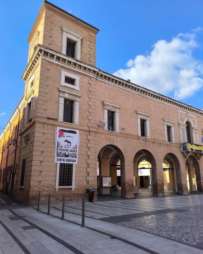 Dopo l’approvazione, lo scorso 29 aprile, di un Ordine del Giorno del Consiglio comunale che impegna il Sindaco a farsi promotore di azioni concrete e a sollecitare il Governo italiano al riconoscimento dello Stato di Palestina, al sostegno per la sua ammissione alle Nazioni Unite e alla promozione del diritto internazionale, l’Amministrazione comunale di Castel Bolognese ha deciso di dare forma visibile a tale indirizzo. Alla luce dei drammatici accadimenti internazionali, nel pomeriggio di giovedì 2 ottobre è stato quindi esposto sulla facciata della Casa comunale uno striscione come appello alla pace, al cessate il fuoco e all’apertura di corridoi umanitari. Con questo gesto l’Amministrazione comunale intende trasformare in un segno pubblico e condiviso la posizione assunta dall’assemblea cittadina, riaffermando che Castel Bolognese non vuole restare indifferente di fronte a una tragedia umanitaria che interpella la coscienza collettiva. La pace, la giustizia e la difesa dei diritti umani restano valori fondanti della nostra comunità. L’amministrazione invita chi può a sostenere concretamente chi porta aiuto sul campo: Emergency.