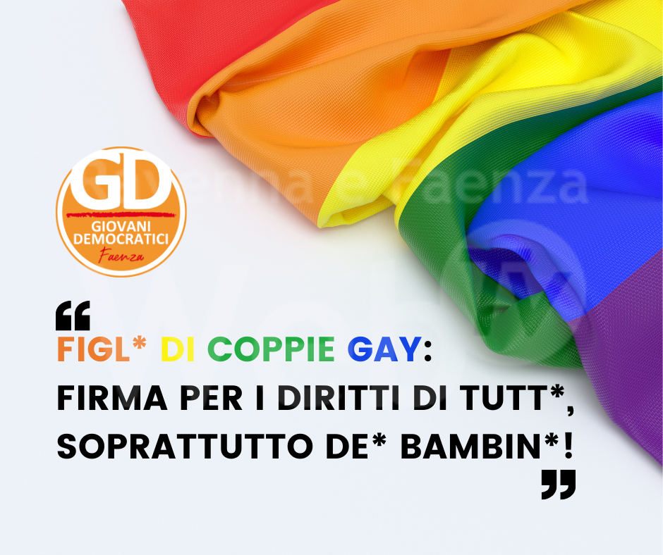 Una raccolta firme per chiedere aI parlamento di riconoscere i diritti dei figli delle coppie gay. I Giovani Democratici di Faenza hanno lanciato sul sito Change.org una petizione online per chiedere più tutele per i figli di coppie omosessuali. Tutto parte da due casi di cronaca che hanno evidenziato un vuoto normativo nella legislazione italiana. Da qui quindi la richiesta di eliminare questo vuoto, che non permette ancora di equiparare i diritti di tutti i bambini