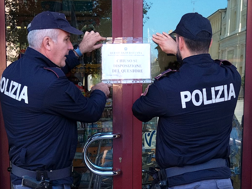 A Ravenna, in zona centro, la Divisione di Polizia Amministrativa della Questura e personale della Polizia Locale hanno applicato il provvedimento di chiusura per 15 giorni ad un bar che nel gennaio di quest’anno era già stato gravato da analoga misura; i controlli effettuati successivamente alla prima chiusura hanno confermato la continuità delle frequentazioni di pregiudicati ed episodi di bivacco e disturbo alla quiete pubblica che i residenti della zona hanno segnalato con un esposto.