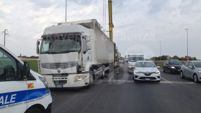 Personale della Polizia Locale di Ravenna – Ufficio Strumentazione tecnica e controllo trasporto pesante, coadiuvato da agenti della Sicurezza Urbana – è intervenuto ieri all’intersezione semaforica SS16 con via Dismano sanzionando il conducente di un autoarticolato per “carico mal sistemato”. Il carico di coils, non adeguatamente fissato, a seguito di una brusca frenata, dovuta all’elevata velocità con cui circolava il mezzo, si sganciava fino a scendere e terminare la corsa sulla cabina del guidatore. L’incidente ha fortunatamente visto riportare danni solo al rimorchio e in parte alla motrice.