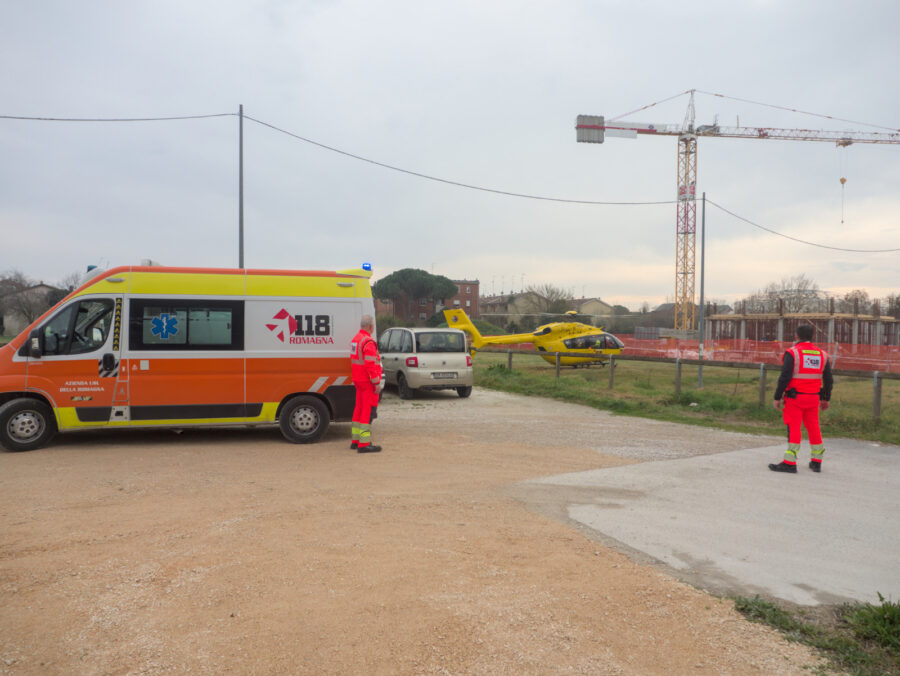 Un operario è caduto da circa tre metri mentre lavorava ed è stato trasportato all’ospedale Bufalini di Cesena tramite elimedica.