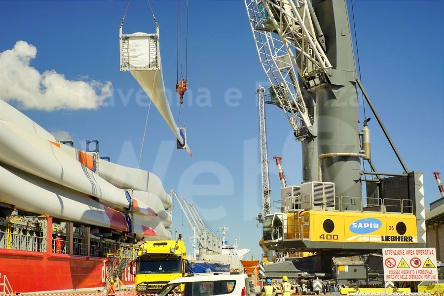 Il terminal ravennate è stato ancora una volta prescelto dal produttore danese Vestas e dall’operatore logistico Galli e figlio di Manfredonia per lo sbarco di pale eoliche.