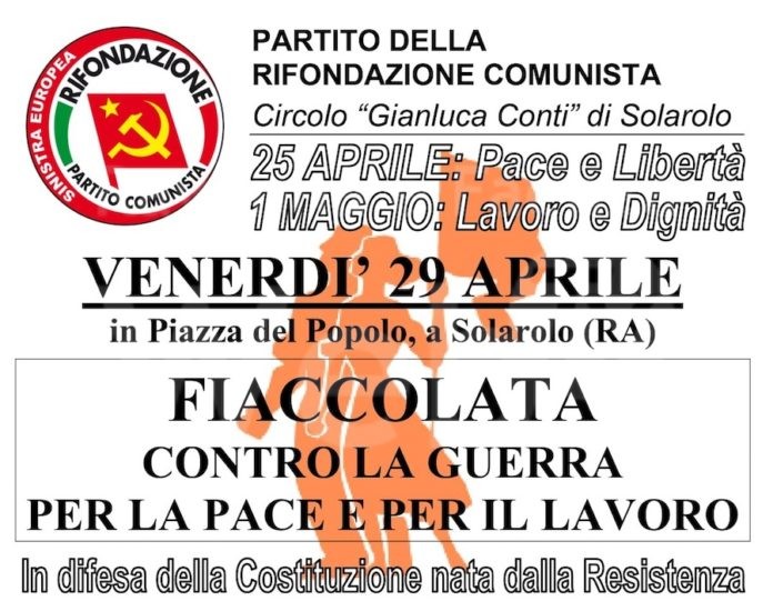 “Considerata l’attuale difficile e pericolosa situazione per la Pace e il Lavoro, auspichiamo che vi sarà possibile tenere in considerazione e dare notizia dell’iniziativa che, come Circolo di Solarolo del Partito della Rifondazione Comunista di Solarolo, abbiamo programmato per venerdì 29 aprile.