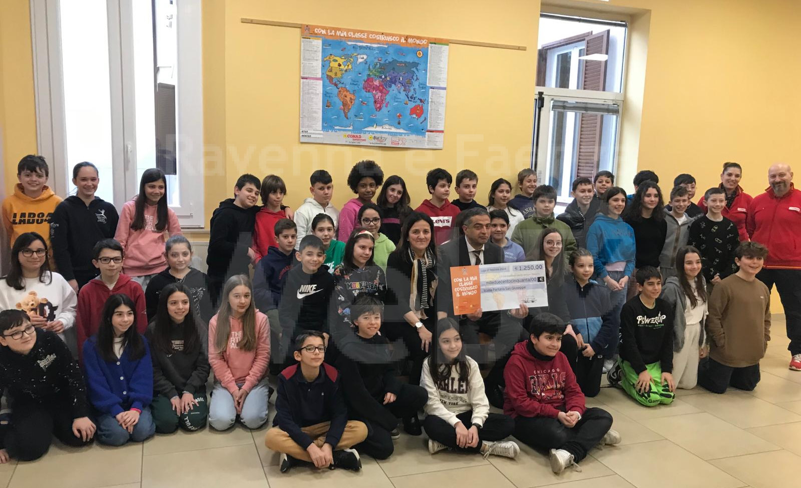 È qui, infatti, che bambini e ragazzi hanno potuto comporre, nelle loro classi, un grande puzzle rappresentante il planisfero, e su questo approfondire caratteristiche geografiche dei vari Paesi, ma anche abitudini, costumi e curiosità di tutti i popoli, dalla cucina alle tradizioni locali. Per questo, a tutte le scuole sono stati consegnati buoni spesa messi a disposizione da Cofra, da spendere per qualsiasi genere di consumo all’interno dei due punti vendita Conad di Lugo (Conad Superstore di via Taglioni e TuDay di via Ricci Curbastro).