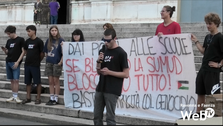 Anche gli studenti di Faenza hanno partecipato alla mobilitazione nazionale studentesca indetta da Osa e Cambiare Rotta, nella giornata del 4 settembre, a supporto della missione umanitaria della Global Sumud Flotilla, per spingere gli organi scolastici a prendere una posizione di chiaro sostegno alla missione umanitaria diretta in Palestina e contro il genocidio perpetrato da Israele.