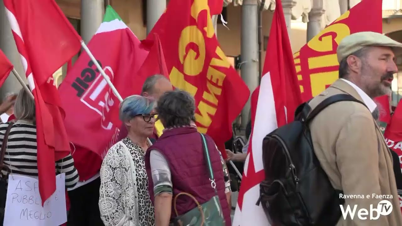 CGIL e UIL della provincia di Ravenna oggi in piazza del popolo a Faenza per manifestare contro la costituzione di una società mista tra l’Asp della Romagna Faentina e la cooperativa In Cammino.