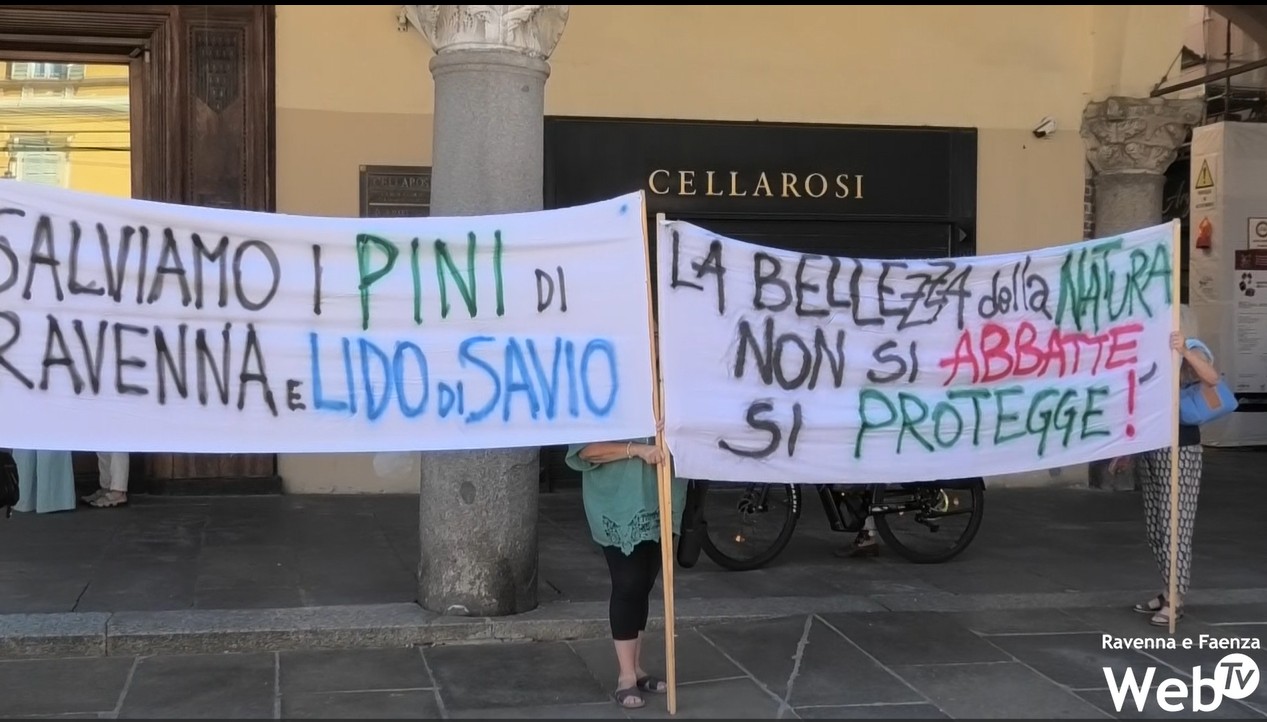 Nuovo presidio del gruppo “Salviamo i pini di Lido di Savio e Ravenna” prima del consiglio comunale, dove ci sarà l’interrogazione del consigliere comunale Alvaro Ancisi di Lista per Ravenna sulle prove di trazione