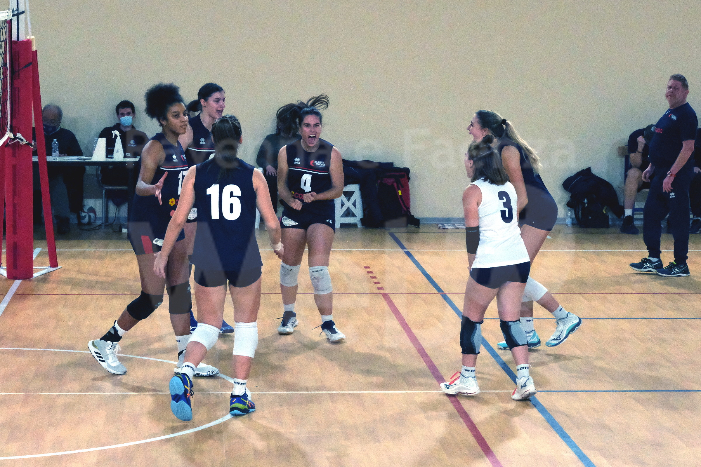 Il secondo set parte in equlibrio, ma le padrone di casa subiscono l’impatto psicologico della rimonta subitan le primo e, dopo essere rimaste aggaciante per la prima parte della frazione, finiscono sotto 10-16 e non riescono più a recuperare fino al 18-25 finale. Andamento più o meno simile nel terzo set, con Ravenna che cerca in tutti i modi di non far scappare la Fenix, che piazza però il parziale nella fase centrale (11-16). Le giovani padrone di casa non mollano fino alla fine e tornano anche a -1 sul 20-21, ma, svanita l’occasione del pareggio, permettono a Faenza di chiudere set e partita per 22-25.