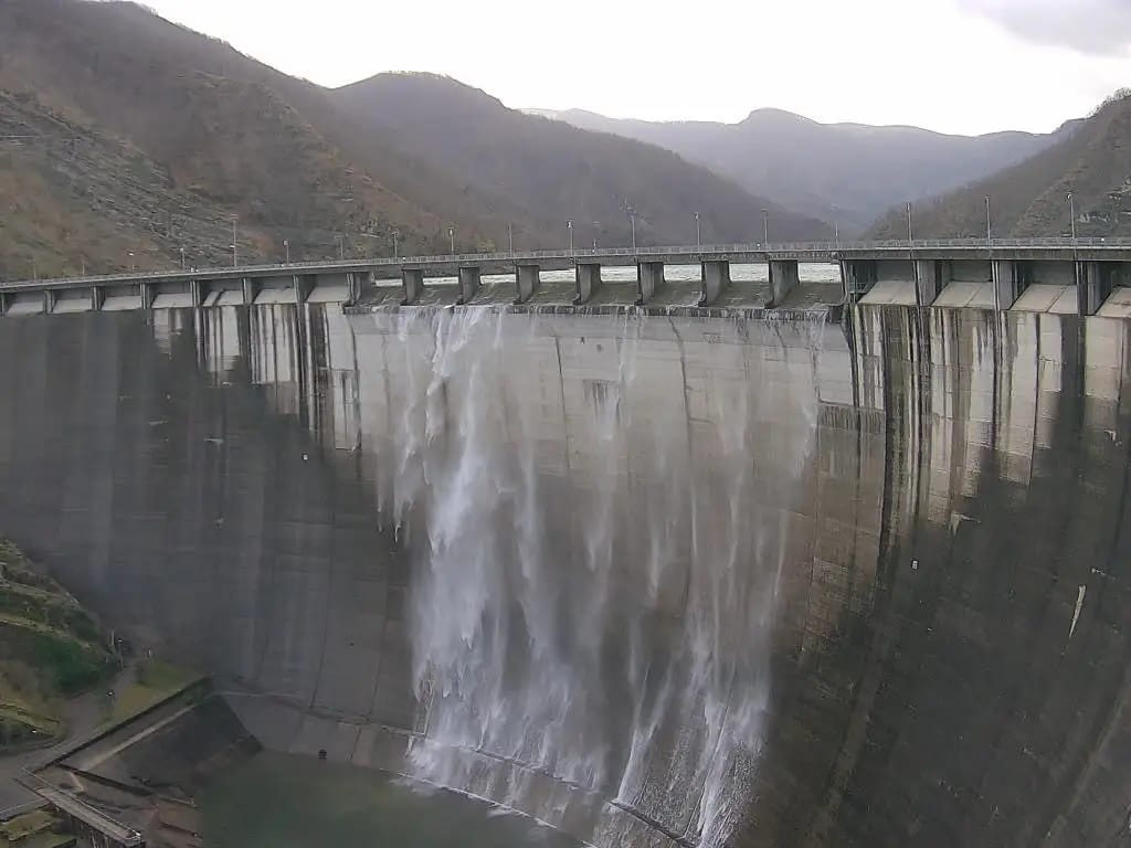 Prima tracimazione dell’anno alla diga romagnola di Ridracoli, in provincia di Forlì-Cesena.