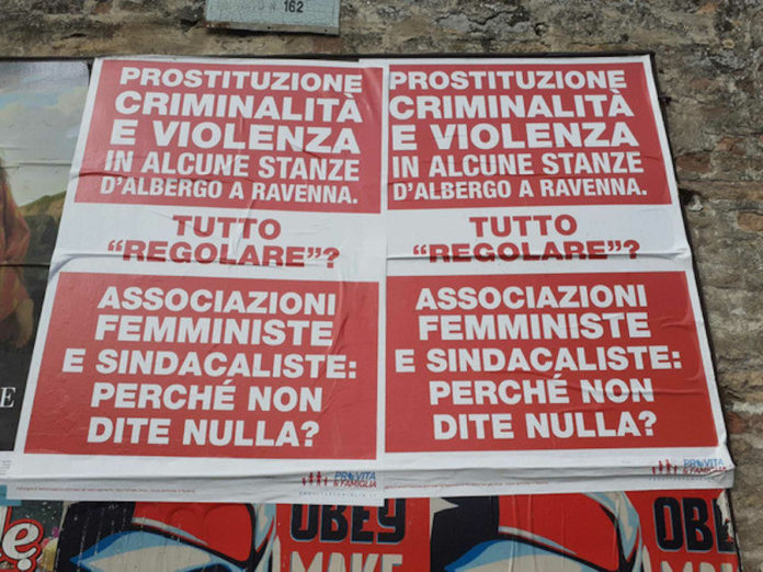 «Siamo stupiti dal clamoroso silenzio che osservano alcune altrimenti loquacissime sigle del mondo radicale femminista e sindacalista locale sul tema della prostituzione a Ravenna: fenomeno spesso caratterizzato dalla contiguità ad ambienti malavitosi. La tutela di queste donne, che vivono in condizioni di degrado, di violenza e di difficoltà e in alcuni casi a poche decine di metri dalle loro sedi, avrebbe meritato una reazione indignata da parte di queste associazioni, e l’attivazione di una pronta e concreta rete di solidarietà per avvicinare coloro che decidessero di cambiare vita: ma anche su questo regna il più stagnante silenzio.