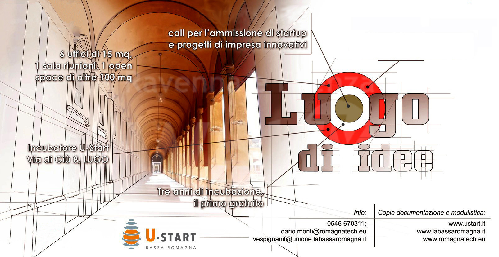 Nuovacall aperta dall’Unione della Bassa RomagnaRomagna Tech, per la presentazione di progetti imprenditoriali e startup innovative da inserire all’interno dell’Incubatore U-Start di Lugo (Ra).