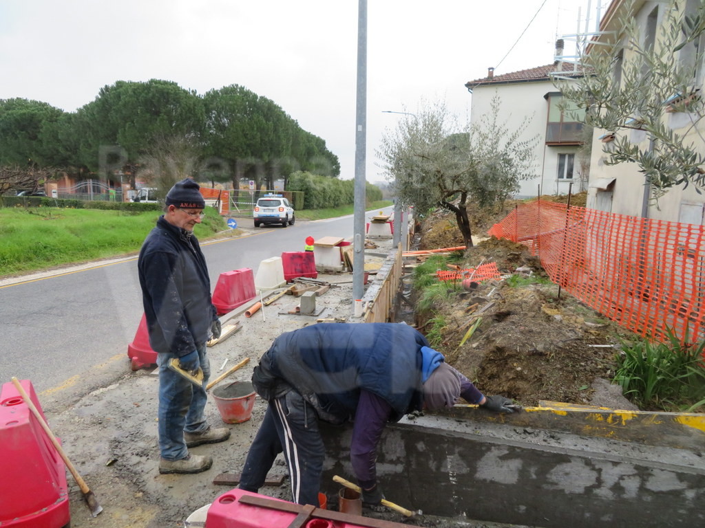 Continuano i lavori lungo via Ospitalacci per la realizzazione della pista ciclopedonale. In questi giorni gli operai della ditta Magistra, che si è aggiudicata l’appalto, sono impegnati nella realizzazione del marciapiede sul lato opposto alla pista.
