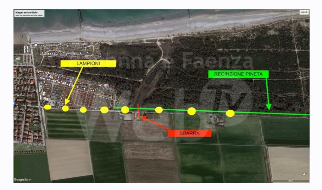 2. l’innalzamento di una recinzione per la protezione della pineta adiacente, a rischio di danneggiamenti e soprattutto d’incendi;