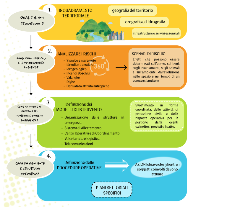 Una sezione chiave è quella dedicata al modello di intervento in caso di emergenza: dal sistema di allertamento alla mobilitazione dei centri operativi, dalle forze di soccorso al volontariato, fino al ripristino dei servizi essenziali e al ritorno alla normalità e alle procedure operative specifiche che gli enti e i soggetti coinvolti ai diversi livelli di coordinamento devono attuare. A questo scopo è stato definito un modello organizzativo univoco: il prefetto, sentito il presidente della Regione, può convocare il Centro coordinamento soccorsi (CCS) per assicurare la direzione unitaria di tutti i servizi di emergenza da attivare a livello provinciale, evitando duplicazioni e sovrapposizioni di competenze. Il CCS si avvale della Sala operativa provinciale integrata (SOPI).