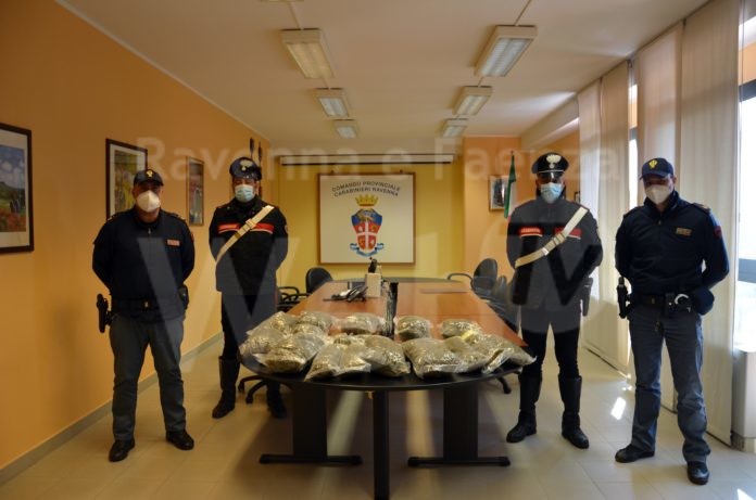 Nell serata dello scorso 18 marzo 2021, nell’ambito di un servizio straordinario di controllo del territorio finalizzato al contrasto del traffico di sostanze stupefacenti, i militari del Nucleo Investigativo di questo Comando Provinciale, coadiuvati da quelli della Stazione CC di Russi, dal personale della Squadra Mobile della Questura di Ravenna e dai militari dell’Unità cinofila della 1^ Compagnia della Guardia di Finanza di Ravenna, hanno individuato un appezzamento di terreno in aperta campagna, tra il Capoluogo e la frazione di Punta Marina, precisamente in via Scolone, ove si riteneva potesse essere occultata della sostanza stupefacente.