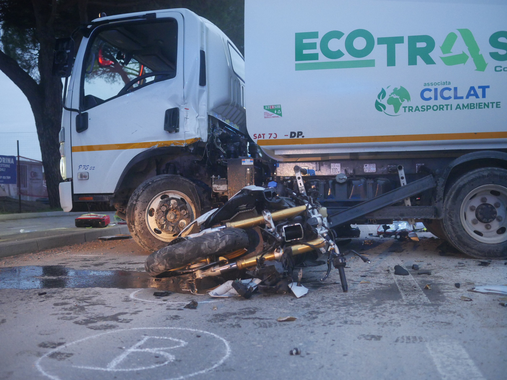 Secondo una prima ricostruzione, affidata alla Polizia locale intervenuta sul posto per i rilievi, il mezzo della nettezza urbana stava effettuando una manovra di inversione di marcia lungo via delle Americhe. In quel momento sopraggiungeva una moto Bmw 1000, condotta dal giovane, che non sarebbe riuscito a evitare l’impatto. Alcuni testimoni hanno riferito di aver sentito il rumore della motocicletta pochi istanti prima dello schianto.
