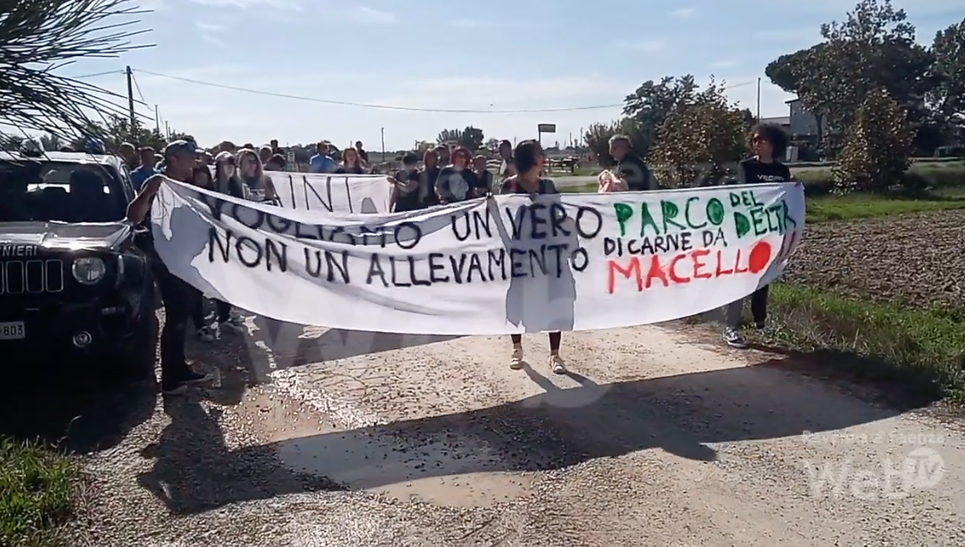 Corteo pacifico per fermare la macellazione o il trasferimento in aziende faunistico venatorie deciso dalla Regione Emilia-Romagna per i daini del Parco del Delta del Po, dalla Pineta di Classe al Lido di Volano