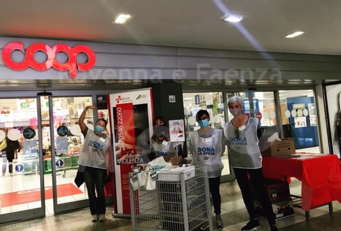 L’Associazione Sos Donna, centro antiviolenza di Faenza, era presente al supermercato Coop “I Cappuccini” di Faenza nella giornata del 17 ottobre 2020, dalle ore 9.00 alle ore 19.00, per una raccolta di solidarietà in supporto alle donne che subiscono violenza, ospiti nelle case rifugio dell’Associazione. Le volontarie del centro antiviolenza erano presenti con un punto informativo per sollecitare e sensibilizzare ancora una volta la cittadinanza ad una riflessione sulla violenza alle donne, distribuendo inoltre, a chi si recava a fare la spesa alla Coop “I Cappuccini”, una lista con l’elenco degli alimenti e dei beni di prima necessità che potevano essere donati a Sos Donna dai clienti della Coop.