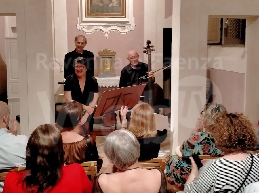 Grande successo e tutto esaurito per il concerto del 15 maggio 2022 della rassegna musicale alla Chiesetta del Ponte Assi Oratorio Madonna di Pompei. Tanta gente anche fuori dall’Oratorio e sulla via Ravegnana per assistere al concerto!. L’evento ha visto la presenza di Concerto ensemble “ Echi Barocchi” con Marina Mammarella, violino, Agide Bandini, violone e Cesare Bandini, clavicembalo. Il programma ha riguardato Sonata del compositore ravennate Arcangelo Corelli e Sonata di C.P.E Bach, di J.S.Bach e di G.Ph. Teleman.