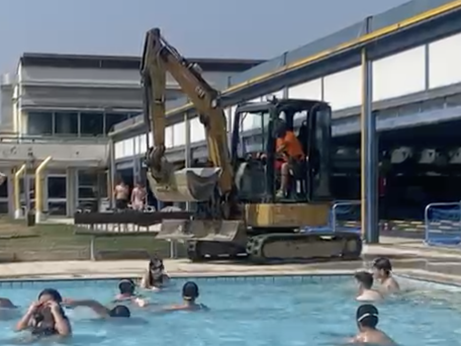 Fatto sta che qualcuno ha dato ordine ad una ruspa del cantiere della nuova piscina, di operare in area fuori cantiere, senza reti e protezioni, senza alcuna cartellonistica, senza alcun moviere, di attraversare un’intera area della piscina, realizzando uno scavo e riattraversato l’area per uscire, nel frattempo che ragazzi innocenti giocavano in acqua e fuori, con rischio di loro investimento.