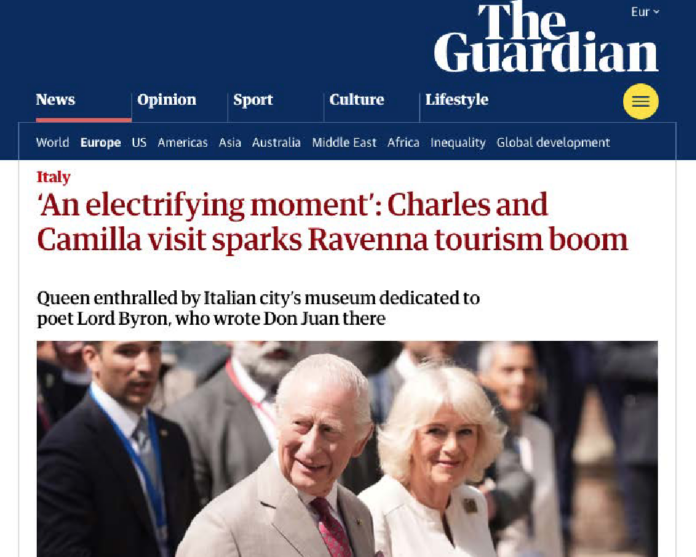 È il prestigioso ‘The Guardian’ ad accendere questa settimana un nuovo, importante, riflettore mondiale sui Musei Byron e del Risorgimento, cui il quotidiano londinese fondato nel 1821 dedica uno speciale reportage sia sull’edizione cartacea, dove nel titolo si cita espressamente ‘la Regina Camilla affascinata dal Museo dedicato a Lord Byron’ sia sull’edizione online che, con i suoi 4 milioni di visualizzazioni ogni giorno, è uno dei media più seguiti oltre che più stimati e considerati per autorevolezza ed imparzialità al mondo.