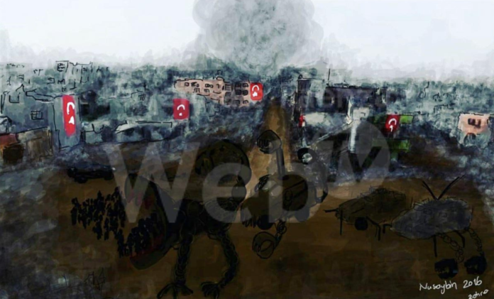 Ma nulla meglio delle opere dell’artista curda Zehra Dogan può narrare quelle cronache e quelle storie di vita perché, come afferma l’artista condannata, nel paese dove viveva, la Turchia, a due anni e nove mesi di prigionia per avere fatto un disegno – scrive Elettra Stamboulis nella sua presentazione – tra l’altro su una foto twittata dalle forze speciali turche, nel 2017, “per me la vita stessa è arte”. Oggi Dogan vive da esule in Europa e sente moltissimo la mancanza della sua terra e della sua gente. A 30 anni da poco compiuti, ha già vissuto varie vite: giornalista, fondatrice insieme ad altre della prima agenzia di stampa interamente femminile, artista visiva, attivista, ha inaugurato una nuova attenzione all’arte che nasce dietro i confini delle sbarre, grazie anche a un processo artistico che mette insieme ascolto dell’altra, pratica femminista, condivisione, utilizzo di materiale estemporaneo e istantaneità dello sguardo.