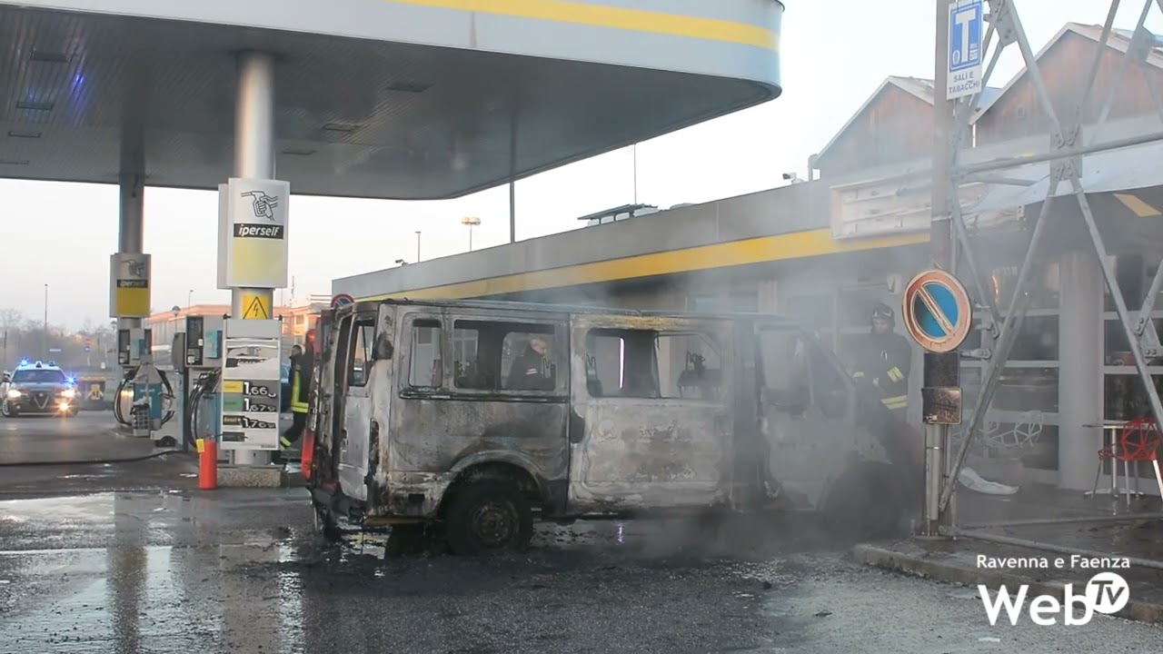 Momenti di grande apprensione questa mattina alle 7.30 a Ravenna, quando un violento incendio ha avvolto un furgone parcheggiato davanti al bar del distributore Eni di via Faentina. Il locale, molto frequentato nelle prime ore del mattino, era affollato di clienti quando, per cause ancora in fase di accertamento da parte dei Carabinieri, il mezzo ha improvvisamente preso fuoco.