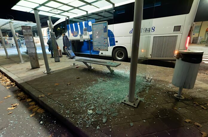L’escalation è culminata quando il ragazzo ha raccolto una grossa pietra e l’ha lanciata con forza contro la vetrata della pensilina del bus, dove in quel momento alcuni passeggeri stavano attendendo l’arrivo della corriera. La lastra di vetro è andata completamente in frantumi, costringendo le persone presenti a fuggire per mettersi al riparo.